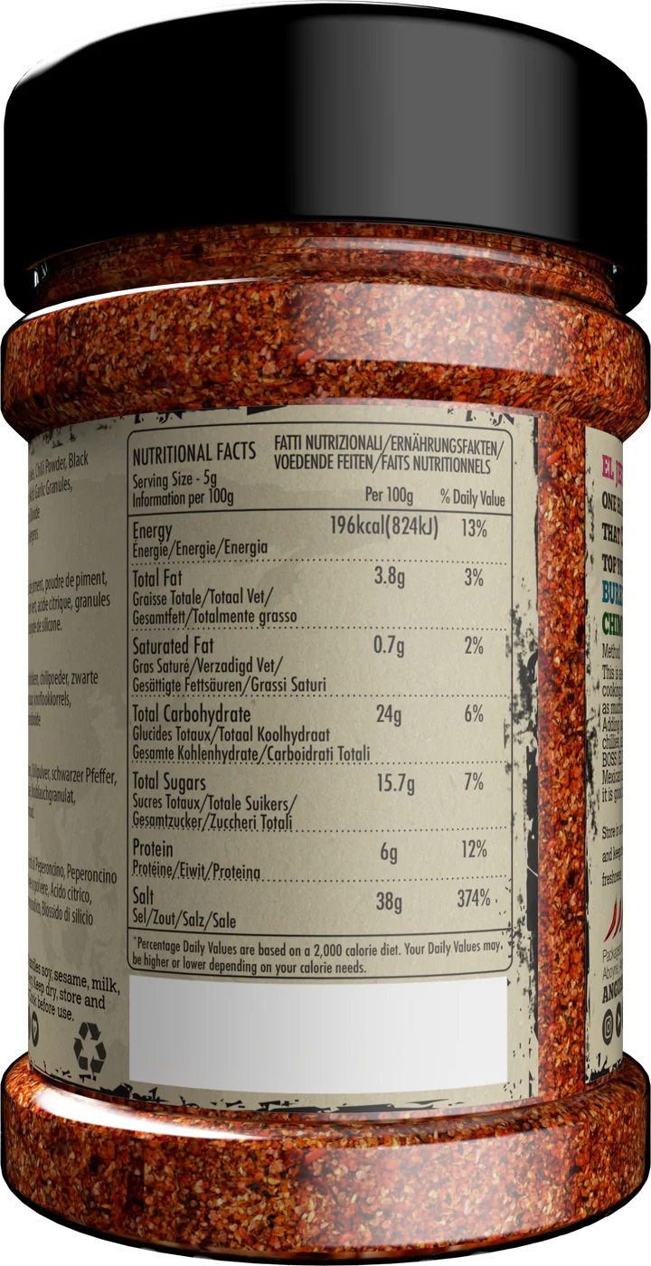Ingrediënten: gedistilleerde azijn, Habanero peper (28,4%), rietsuiker, TABASCO® pepersaus (gedistilleerde azijn, rode peper, zout), zout, mangopuree, gedroogde ui, bananenpuree, tomatenpuree, tamarindepuree, papaja puree, specerijen, knoflook, TABASCO® peperpulp (gerijpte rode peper, zout).